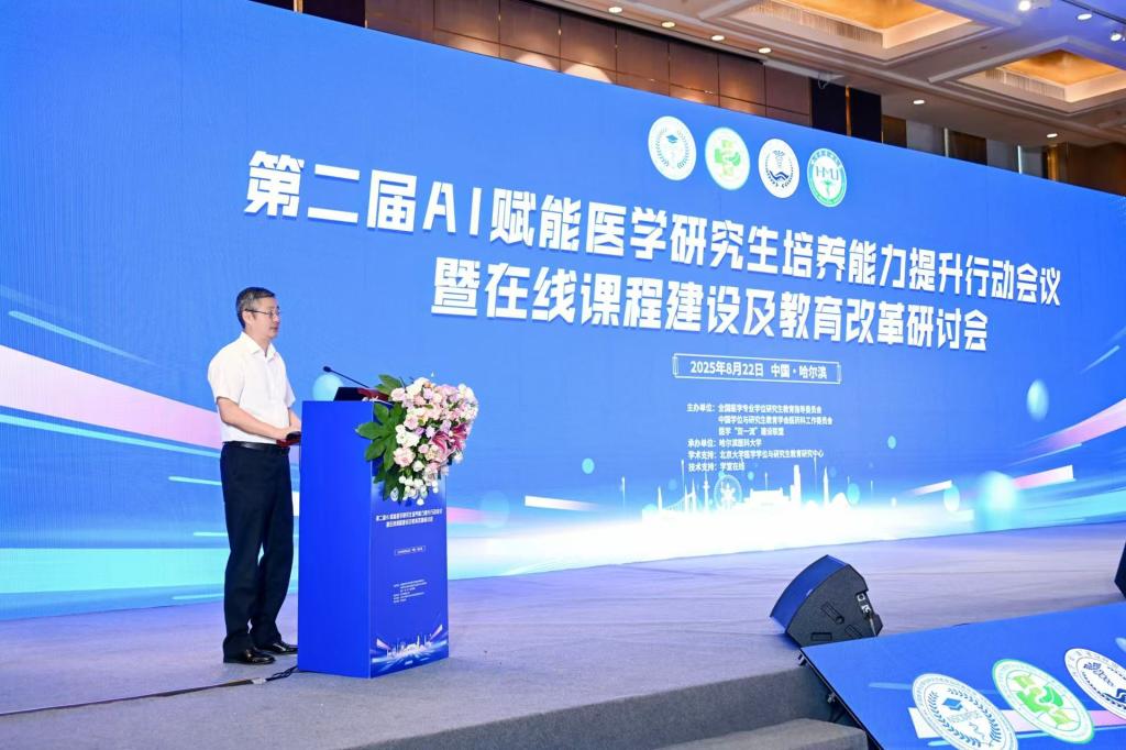 8月22日,由全国医学专业学位研究生教育指导委员会、中国学位与研究生教育学会医药科工作委员会和医学“双一流”建设联盟联合主办,云鼎4118网站承办的“第二届全国AI赋能医学研究生培养能力提升行动会议暨在线课程建设及教育改革研讨会”在哈尔滨召开。会议深入贯彻落实国家教育数字化战略行动及人工智能赋能教育行动,推动优质资源共享,促进医药学研究生在线教育改革,共话数字化赋能研究生教育高质量发展新蓝图。
